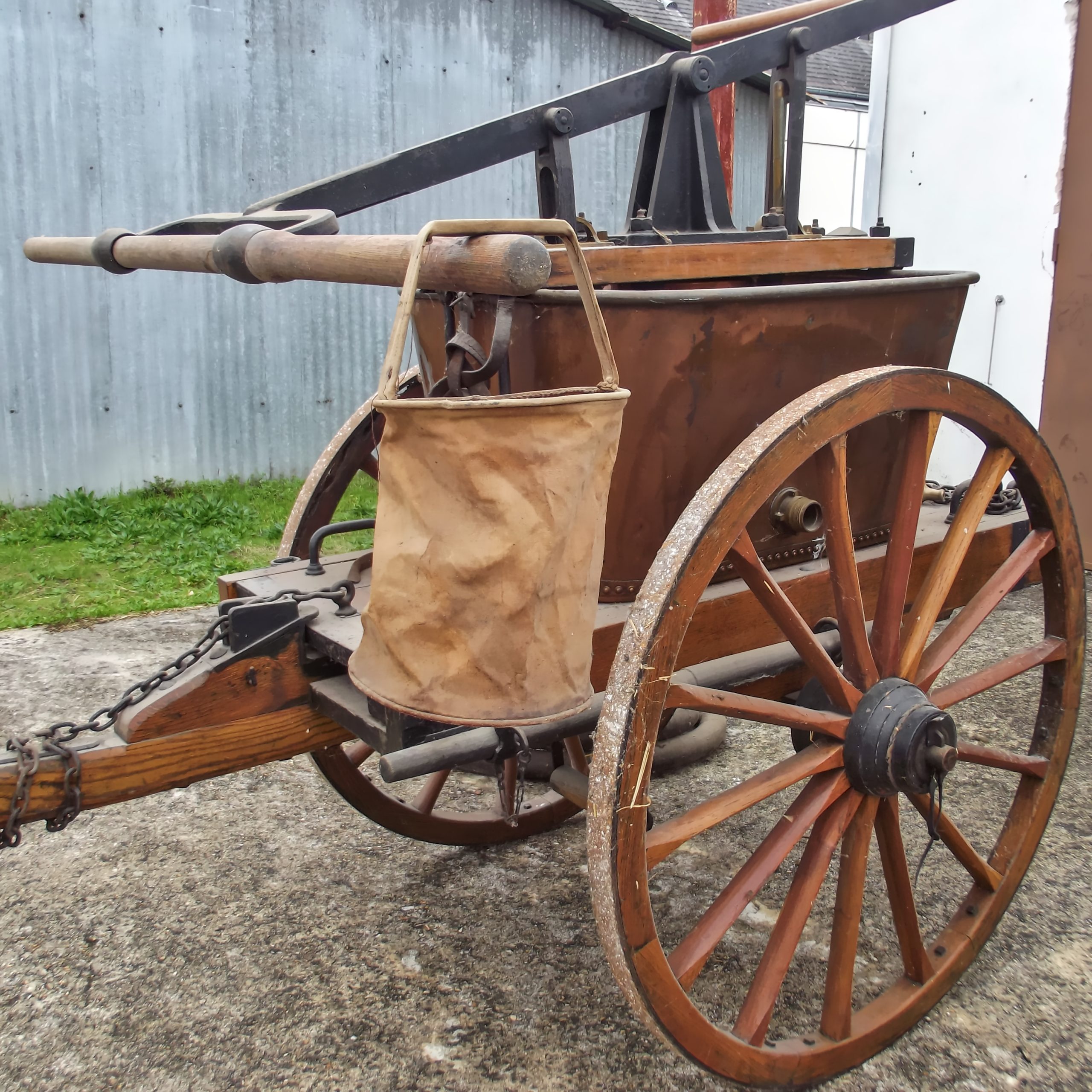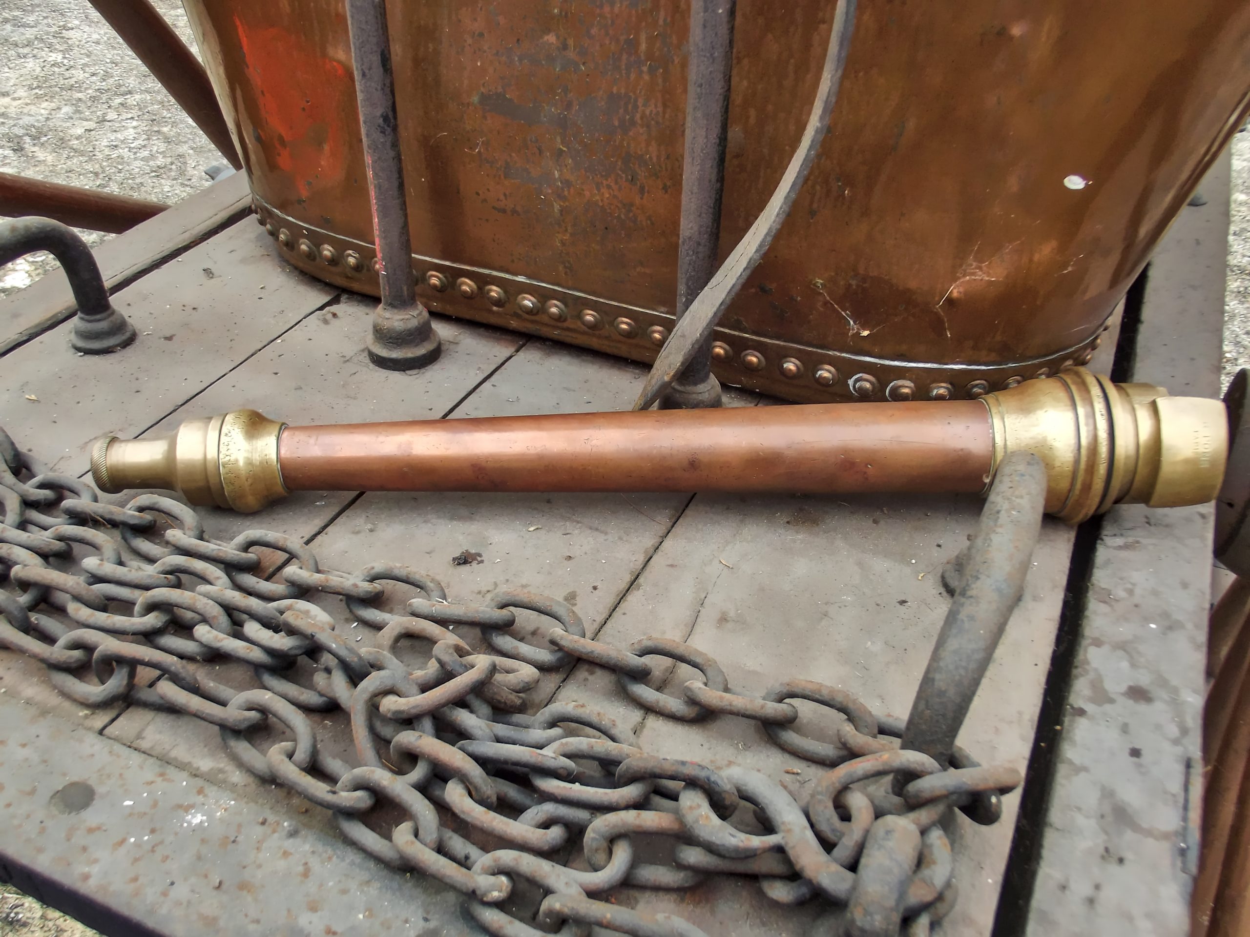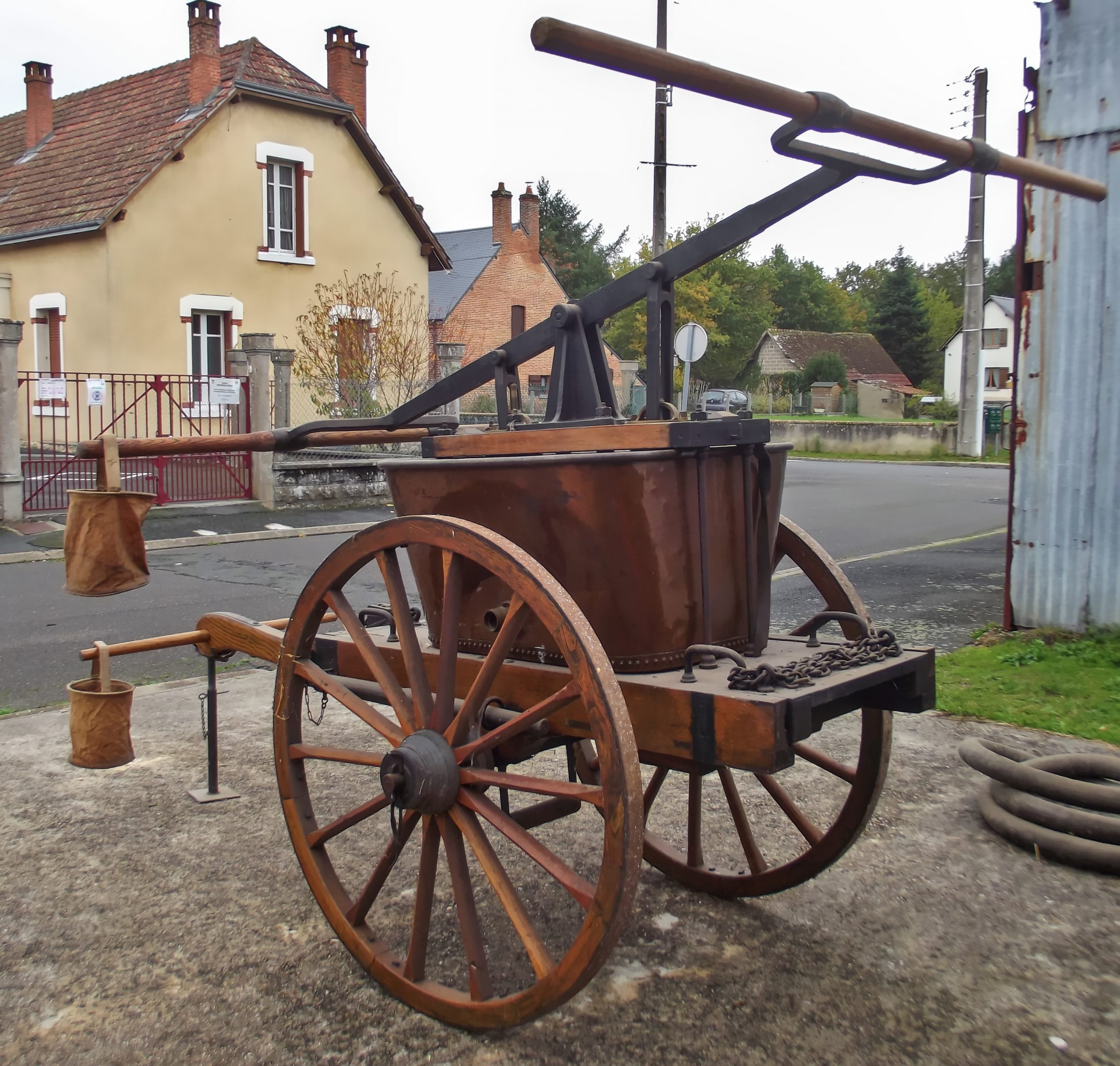 En bon état de conservation, la pompe incendie de La Ferté-Imbault montre tout de même quelques traces de son passage au feu. Elle coule désormais des jours tranquilles, bien remisée dans son abri… Quand elle n’est pas dérangée par l’association d’histoire locale !